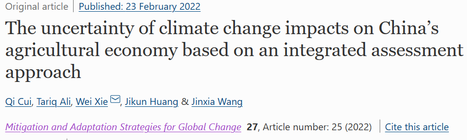研究成果 | 黄季焜、王金霞和侯玲玲与合作者的5篇论文被IPCC AR6的第二工作组报告引用2022-06-20