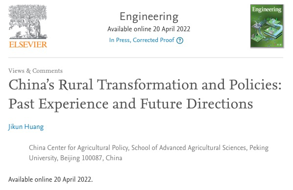 黄季焜教授在爱思唯尔Engineering期刊上发表1篇有关“中国农村转型与政策”的研究成果。2022-05-13 -