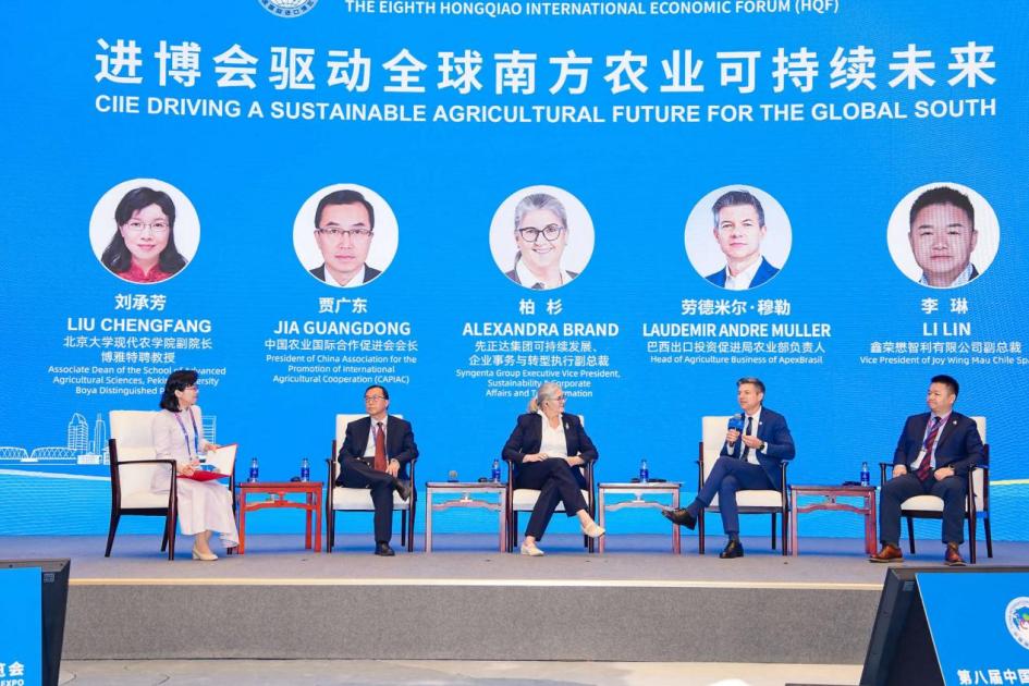 论坛的圆桌对话环节由44118太阳成城集团副院长、博雅特聘教授刘承芳主持,中国农业国际合作促进会会长贾广东、鑫荣懋智利有限公司副总裁李琳、先正达集团可持续发展、企业事务与转型执行副总裁柏杉(Alexandra Brand)与巴西出口投资促进局农业处负责人劳德米尔·穆勒等中外嘉宾围绕“如何破解全球南方农业的可持续性难题”与“进博会平台如何催化全球南方农业贸易的高质量发展”两大议题展开讨论。嘉宾们结合自身的专业领域和实践经验,从科技、政策、市场、国际合作等多个维度,分析了挑战背后的机遇,并分享了富有建设性的思路。
