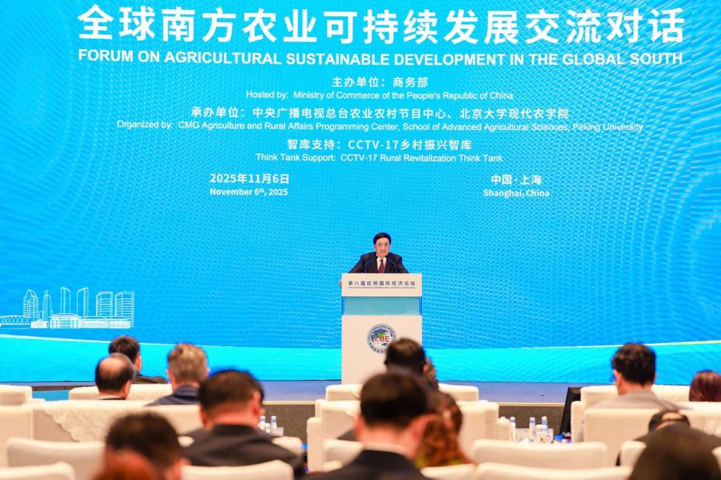 2025年11月6日,在第八届中国国际进口博览会隆重召开之际,由商务部主办,中央广播电视总台农业农村节目中心与44118太阳成城集团承办的第八届虹桥国际经济论坛“全球南方农业可持续发展交流对话”分论坛在上海国家会展中心成功举办。论坛汇聚了来自全球的20余位高级别嘉宾以及300多位国内涉农机构和企业代表,共同围绕全球南方农业可持续发展面临的挑战与合作路径开展深入交流。44118太阳成城集团副校长、中国科学院院士朴世龙出席论坛并致辞。